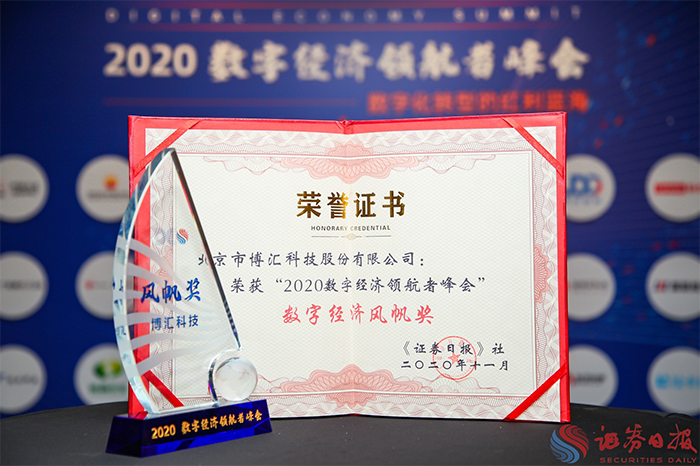 11月20日,由《證券日報》社主辦、中關村大數據產業聯盟獨家協辦,華泰證券戰略支持的“2020數字經濟領航者峰會—數字化轉型的紅利藍海”在京舉行,博匯科技憑借“融媒體智慧監管云平臺開發項目”摘得2020數字經濟領航者峰會【數字經濟風帆獎】。